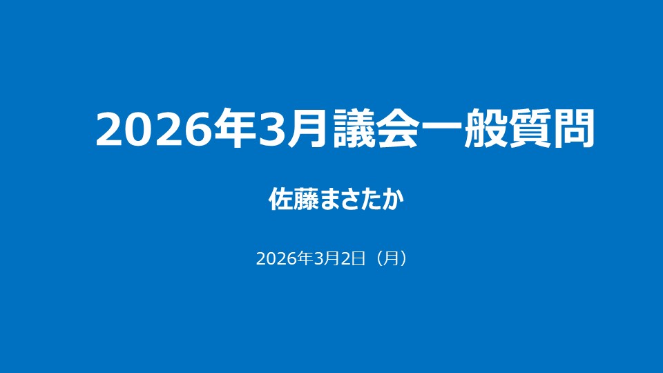 一般質問は3月2日(月)の2人目として10時半からちょうど1時間行いました。