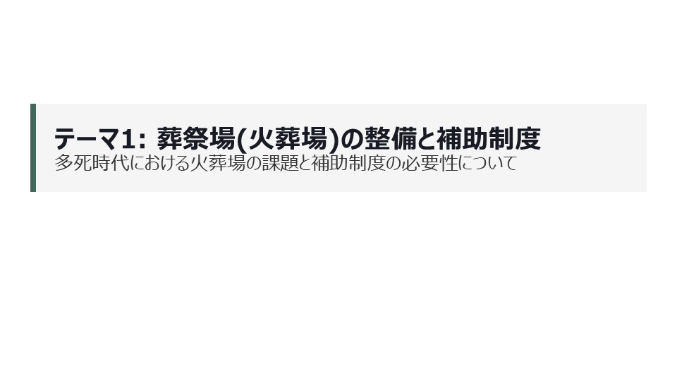 1.葬祭場(火葬場)整備と補助制度の必要性を問う