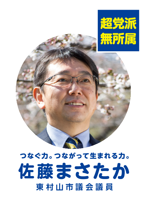 子どもや若者が夢を持てるまち。いのちと環境が大切にされ安心して暮らせるまち。私が思う「幸せなまち」とはそういうまちです。それをつくりだすのはお互いの「つなぐ力」。地域をつなぎ、世代をつないで、新しい時代にふさわしい東村山をつくっていきましょう。