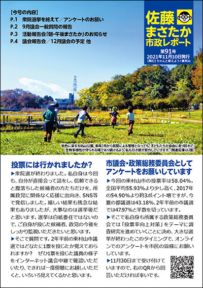 ●投票には行かれましたか? ●市議会・政策総務委員会としてアンケートをお願いしています ●2021年9月定例議会 佐藤まさたか一般質問の報告