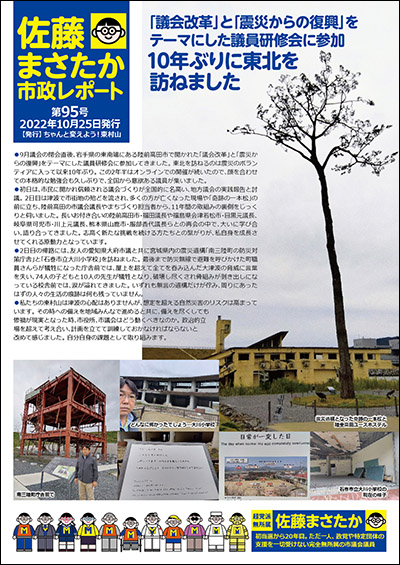 ●「議会改革」と「震災からの復興」を テーマにした議員研修会に参加 10年ぶりに東北を 訪ねました ●9月定例議会レポート