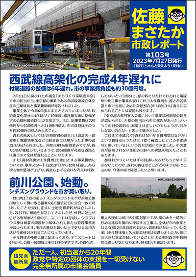 ●西武線高架化の完成4年遅れに ●前川公園、始動。