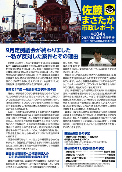 ●9月定例議会が終わりました ~私が反対した案件とその理由 ●9月定例議会 一般質問への市の答えは…
