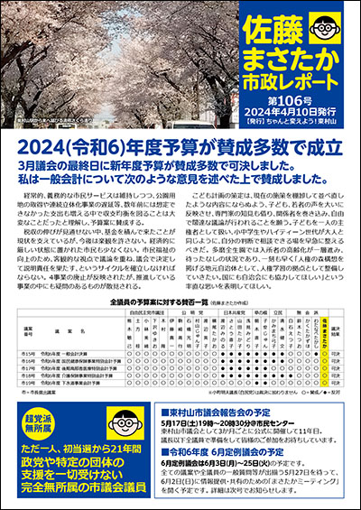 ●2024(令和6)年度予算が賛成多数で成立 ●まさたかの視点・論点