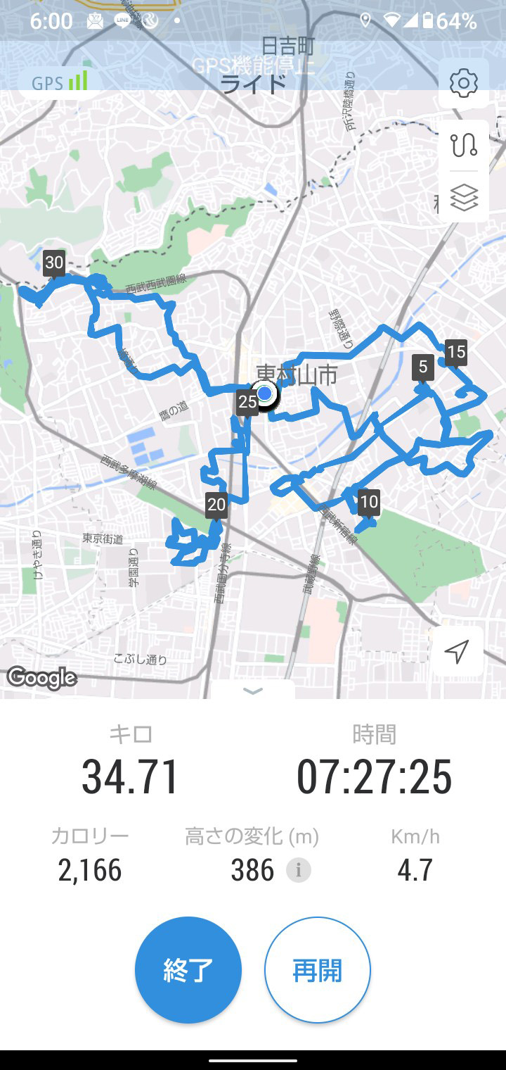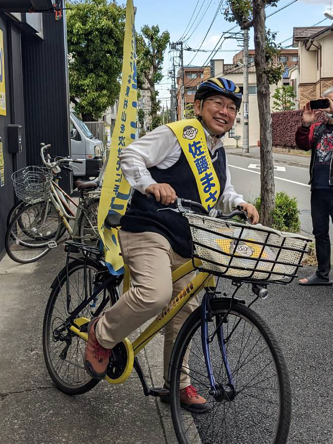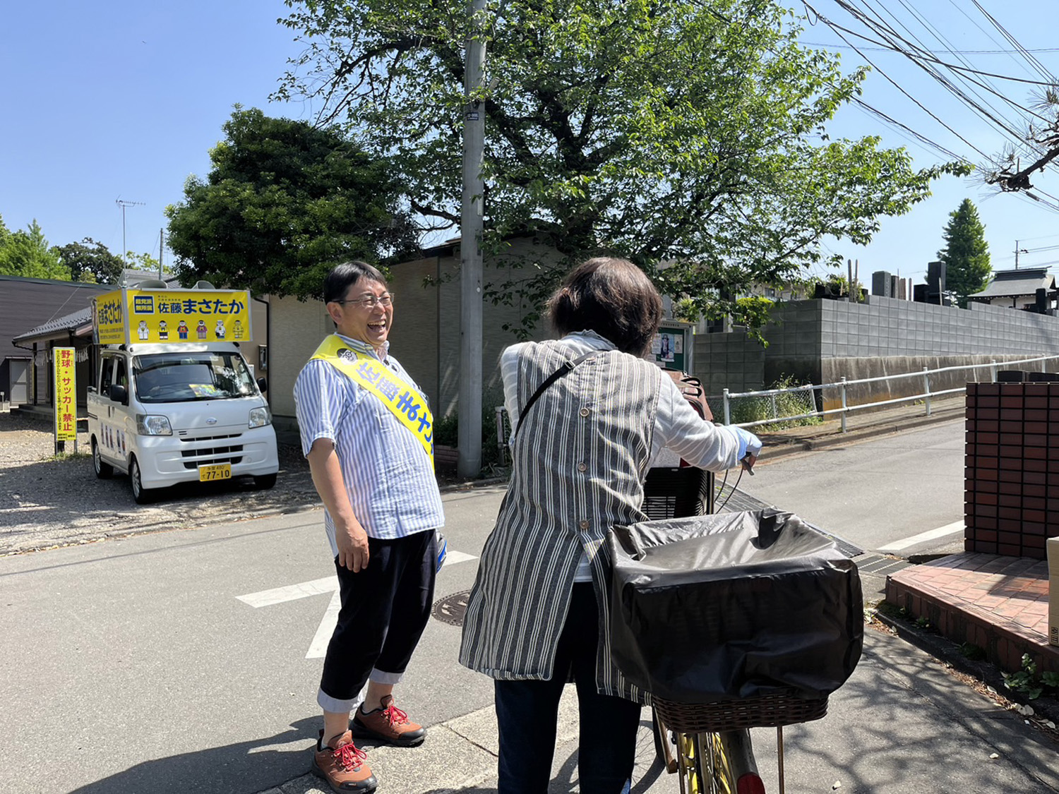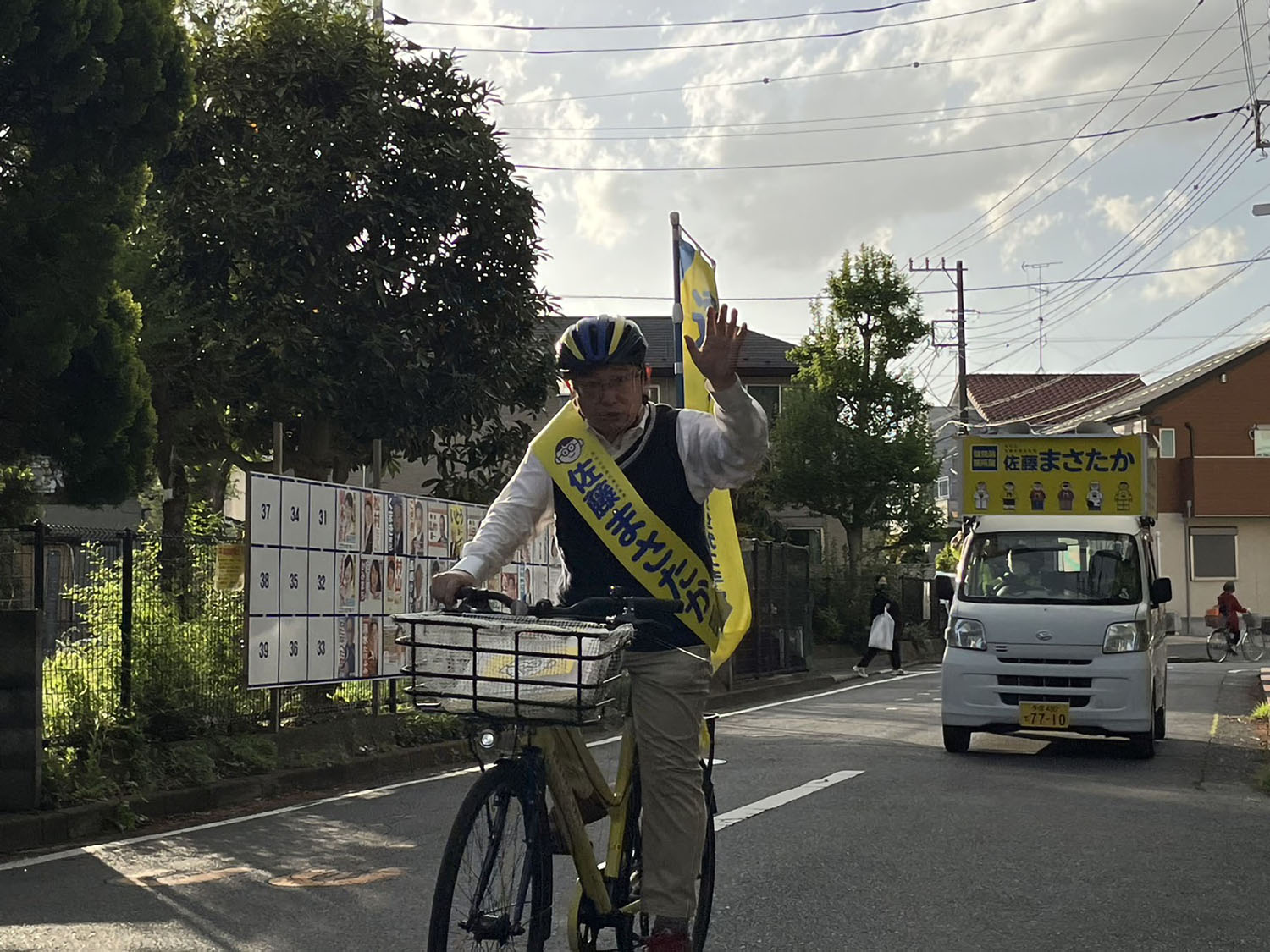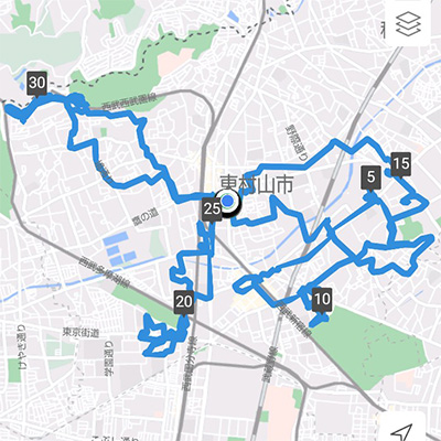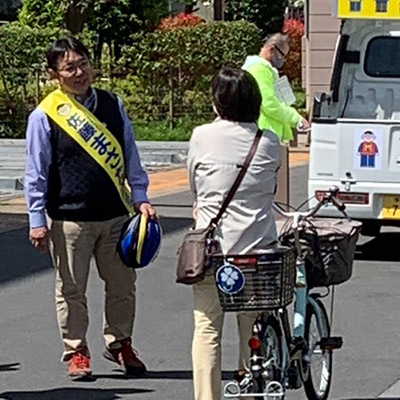 辻々を丹念に回ったこの日のスポット演説は23か所。自転車での走行距離は少し短めの24.22kmでした。