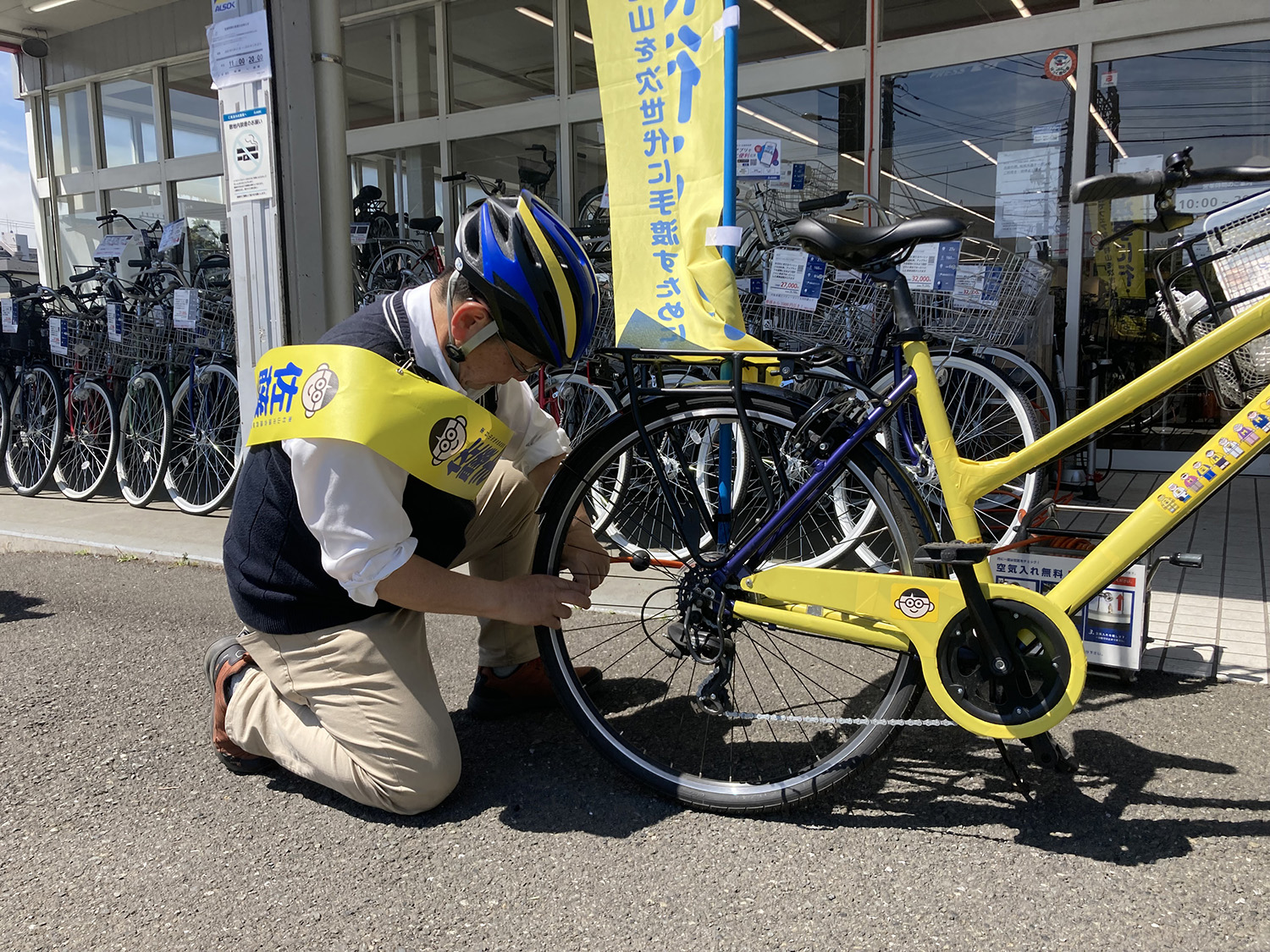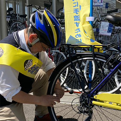 自転車屋さんで空気のチェック
